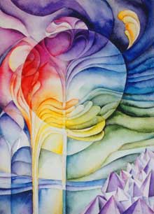 Goethes Farbenlehre - bildnerische Assoziationen 1985/1986 Die reinen Farben des Farbkreises ersetzen die erdigen Farbtöne der Landschaftsmalerei.