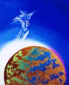 Wir sind Sternenstaub 1998/1999 Bilder zur Genesis, zu Ernesto Cardenal: "Gesänge des Universums" und zu Novalis: "Hymnen an die Nacht" - Kombination reiner Farben mit reinem Blattgold.