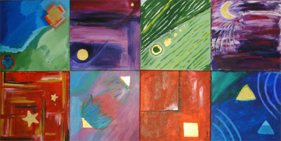 Auf quadratischen Keilrahmen, die zum Abschluss als ein großes Bild leuchteten, zeigte sich die subjektive kreative Energie im