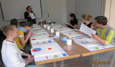 Während der Trocknungsphasen des Malprozesses erfuhren die BeraterInnen der myconsult GmbH Interessantes über Farbe und Marketing.
