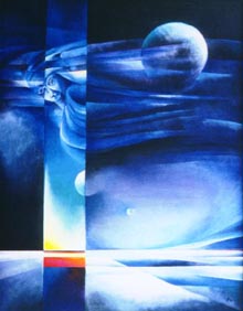 Novalis, "Hymnen an die Nacht - bildnerische Assoziationen 1989 Der Novaliszyklus bringt die Dominanz der Farbe Blau in die leuchtenden Bilder.