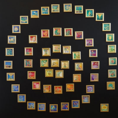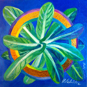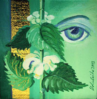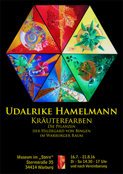 Mit ihren Pflanzenbildern interpretiert Udalrike Hamelmann die Texte der „Physica" in leuchtenden Farben, kombiniert mit reinem Blattgold. Die Symbolik der Flora erschließt sich in magisch phantasievoller Bildsprache, ergänzt durch duftende Kräuter. Gleichzeitig vermitteln die Bilder tiefes Wissen um die biologischen und therapeutischen Eigenschaften der Pflanzen.